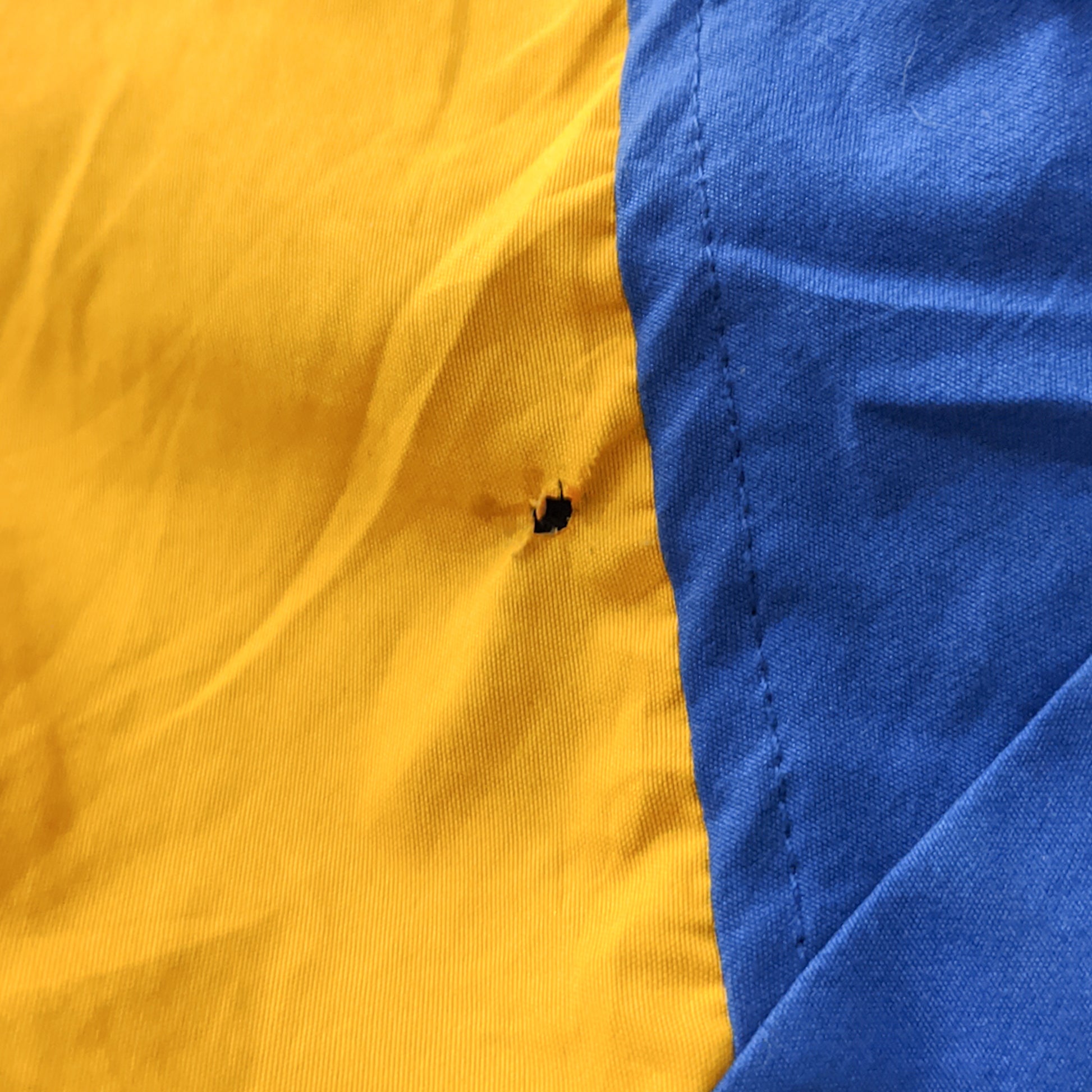 faint mark stains, hole on sleeve.