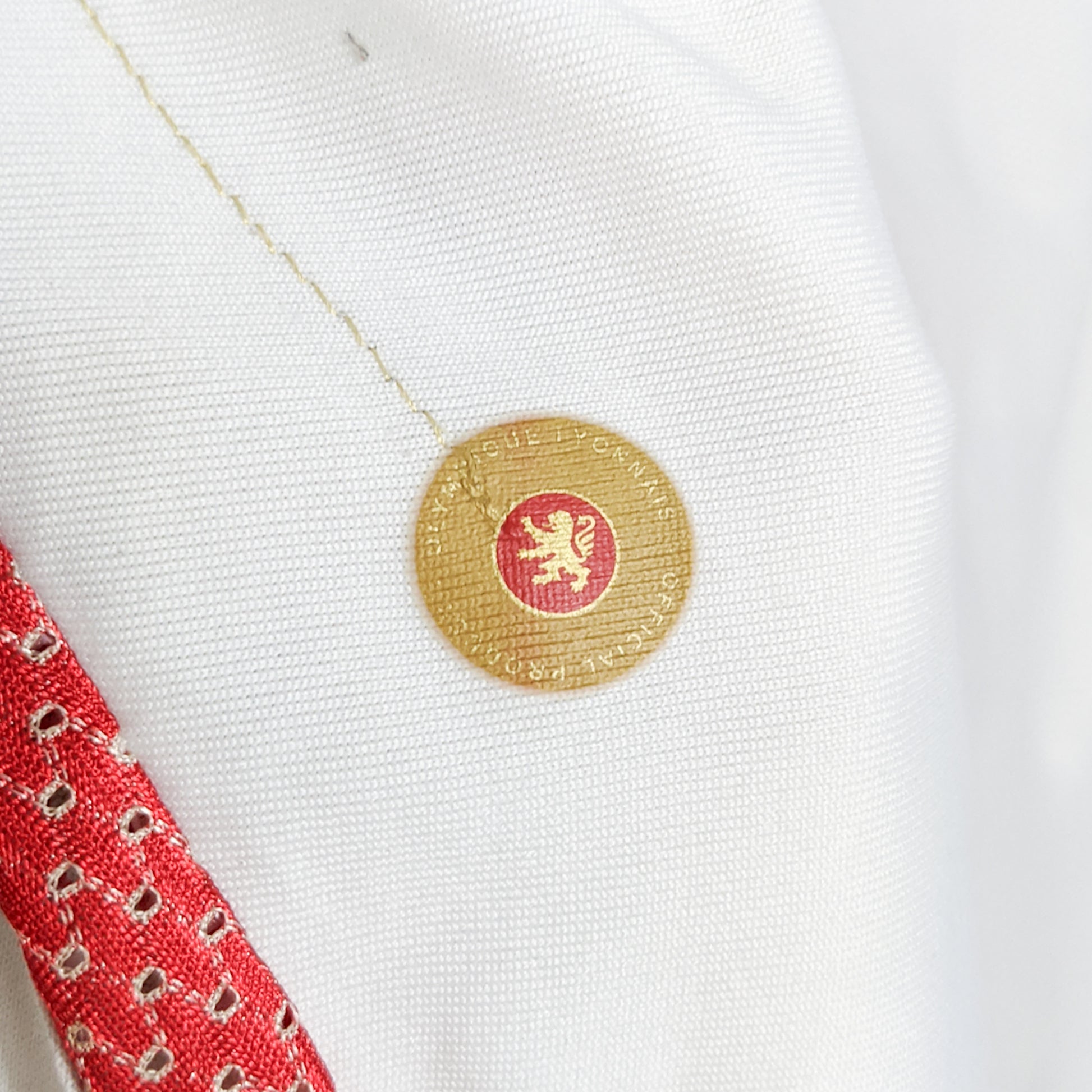some stains, ornament on shoulder slight peeled.